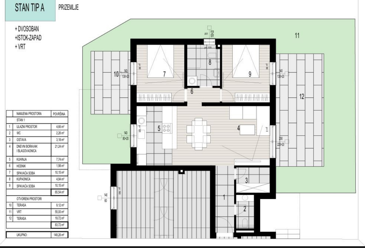 SEGET DONJI*** Dvosobni stan na prvom katu, 66,33 m2 + 19,19 m2