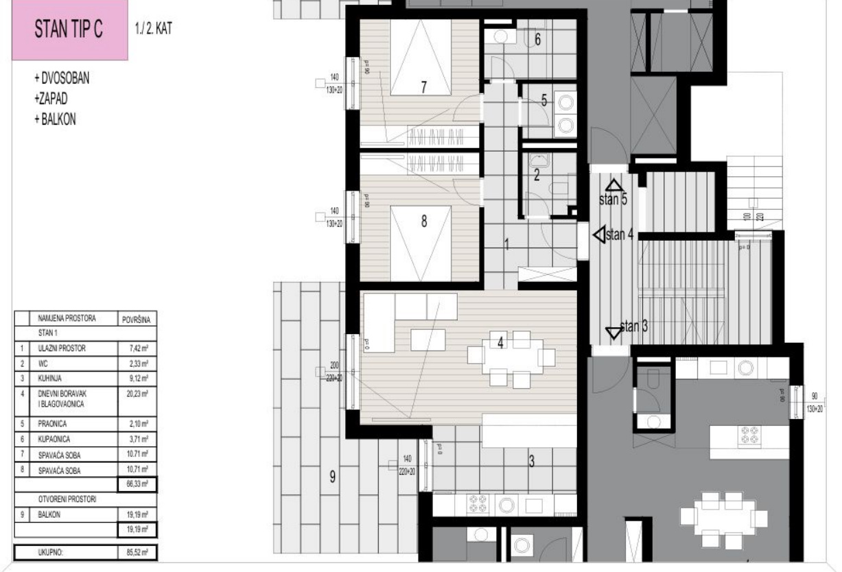 Na prodaju stavljamo dvosobni stan u stambenoj zgradi u izgradnji u Segetu Donjem.