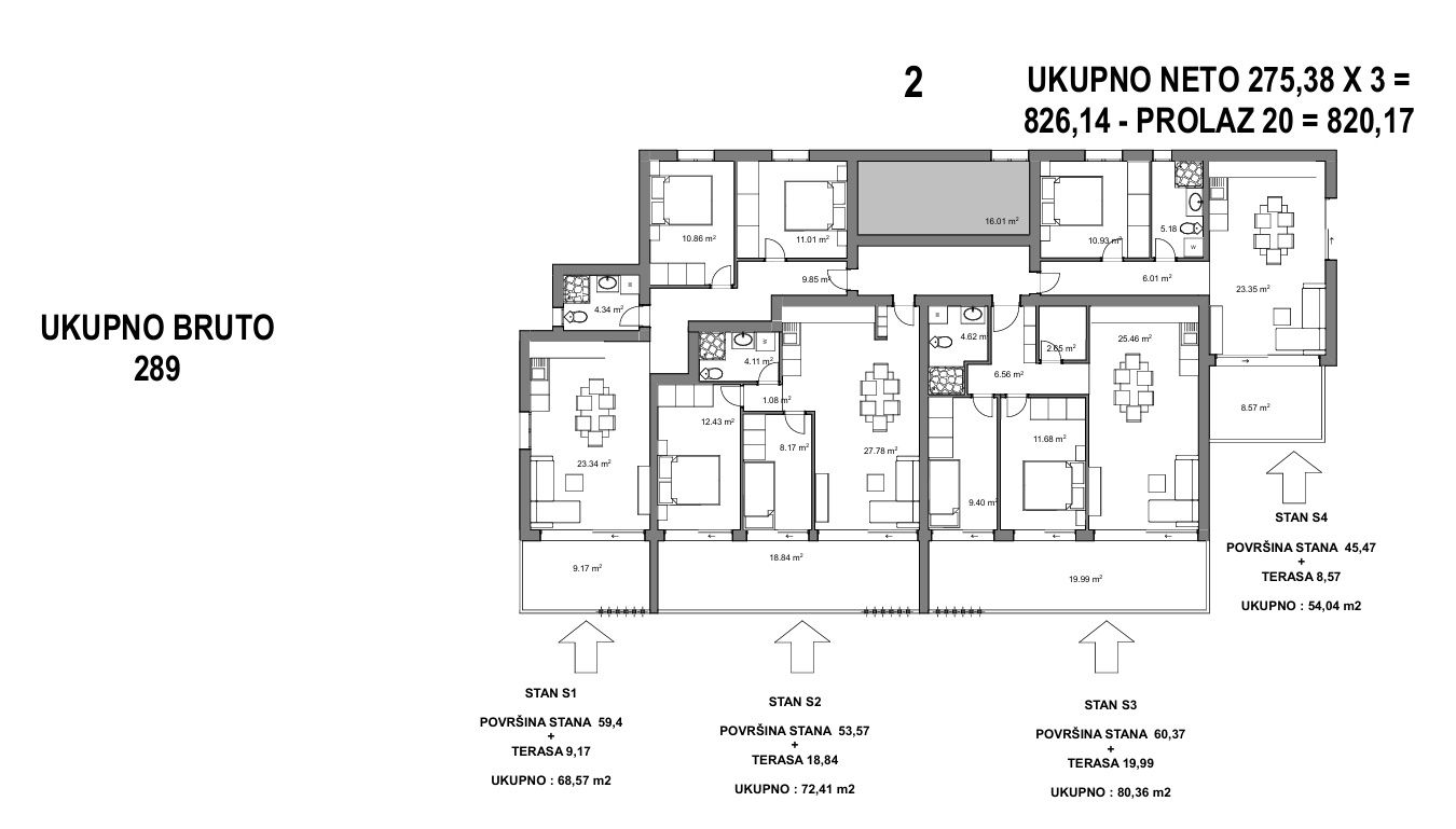 Na zemljištu se može graditi objekt od tri etaže s ukupno 12 stanova, tlocrte idejnog projekta možete pronaći u galeriji.