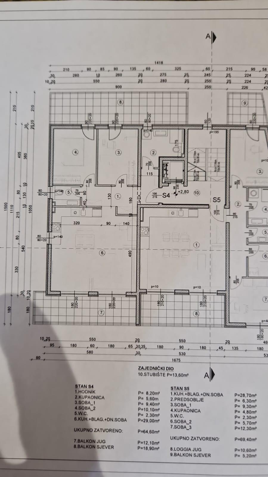 Zatvoreni stambeni prostor čini površina od 64,60 m2, a dva balkona zauzimaju 12,10m2 i 18,90m2.