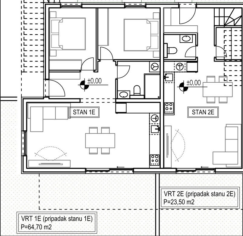 OKRUG GORNJI*** Dvosobni stan u prizemlju, 117,14 m2, S14