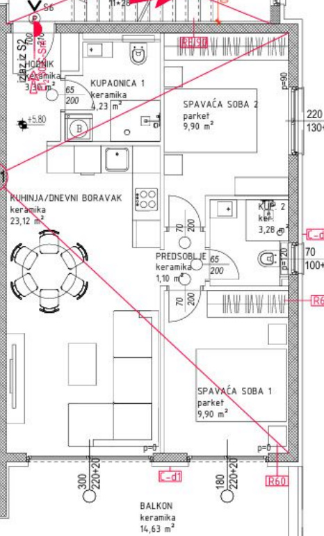 OKRUG GORNJI*** Dvosobni stan na drugom katu 93,63 m2 , S23