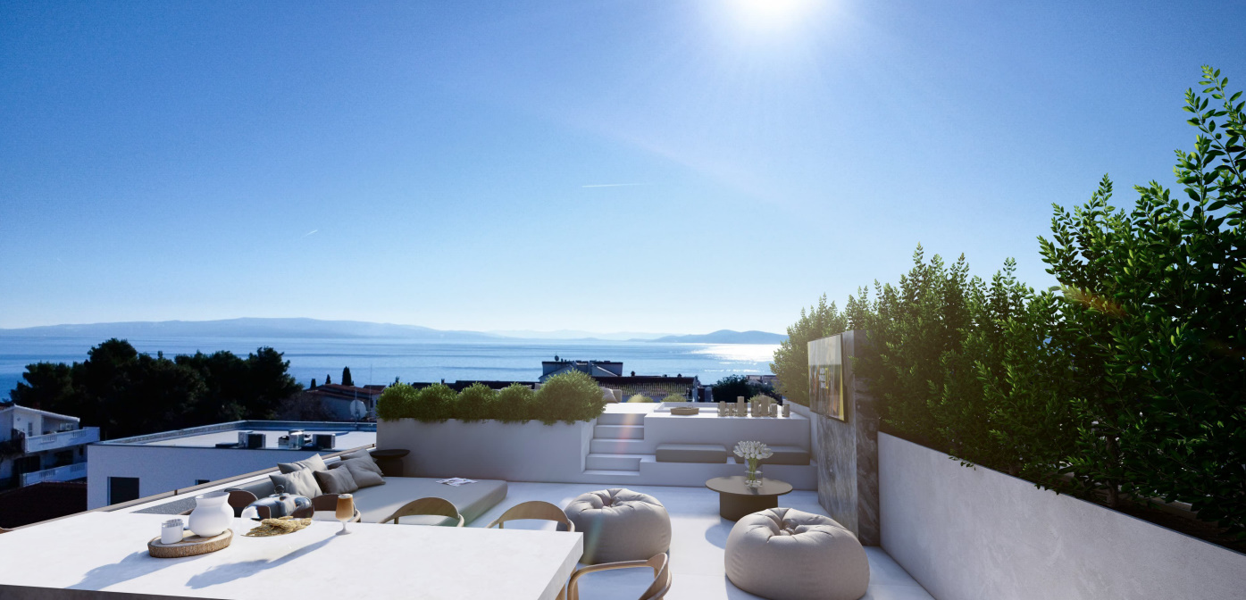 Stan se sastoji od hodnika, dvije spavaće sobe, dvije kupaonice s wcom, dnevnog boravka s kuhinjom i blagavaonom, te prostrane terase.