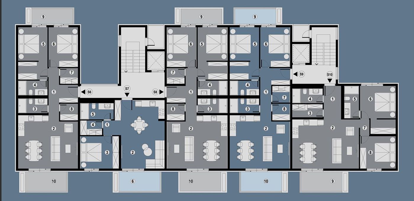 Sastoji se od ulaznog prostora, dvije kupaonice, dvije spavaće sobe, dnevnog boravka s kuhinjom i blagavaonom, praonice, spremišta, te komforne terase.