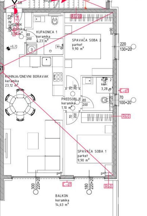 OKRUG GORNJI***Dvosobni penthouse stan s krovnom terasom, 70 m2 + 70 !